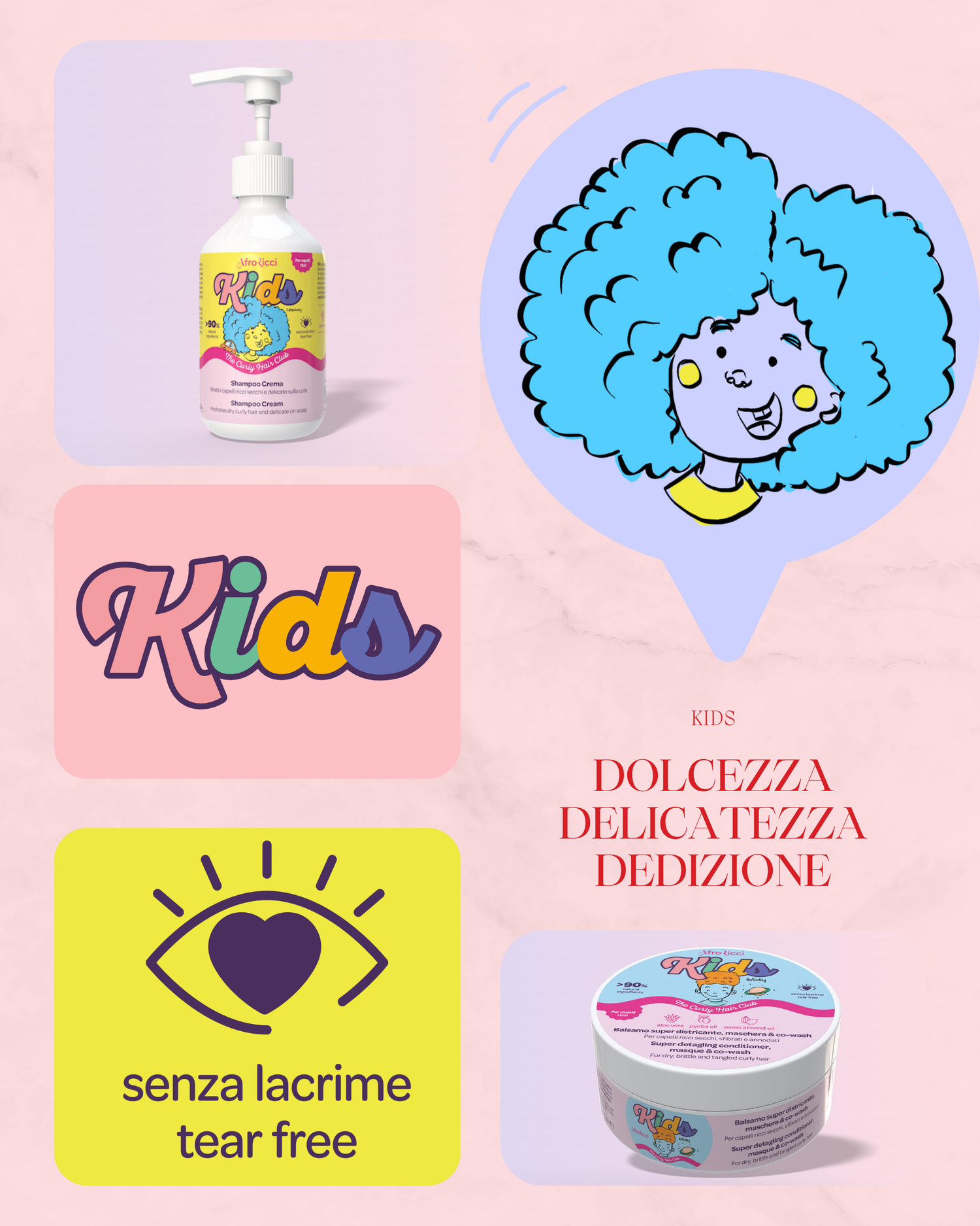 Scopri AfroRicci Kids, la linea di prodotti dedicata alla cura dei capelli ricci dei bambini. Formulati con ingredienti naturali e delicati, i nostri prodotti offrono idratazione e definizione, rendendo la cura dei ricci un momento di gioia e gioco. Unisciti alla nostra community e valorizza la bellezza naturale dei ricci dei più piccoli con AfroRicci Kids.